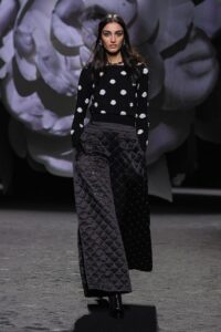 Chanel bawi się objętościami, naszywając trójwymiarowe groszki na ubrania, które przypominają efektowne aplikacje 3D. Lanvin prezentuje architektoniczne cięcia, zestawiając urocze groszki z surowym krojem jednorzędowego płaszcza. Balmain zainspirowany sylwetką „new look” Diora proponuje komplet z pudełkowym żakietem i rozkloszowaną spódnicą na obszernej halkce.