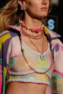 Micro topy i eleganckie biustonosze przełamują konserwatywne stylizacje w klimacie lat 50., podkreślając jednocześnie talię w zestawieniach inspirowanych latami 90. – szczególnie w połączeniu z mini spódniczkami czy spodniami z wysokim stanem.
